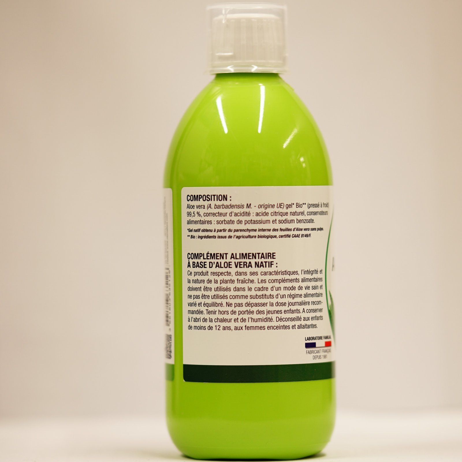 *Gel natif obtenu à partir du parenchyme interne des feuilles d’Aloe vera sans pulpe.