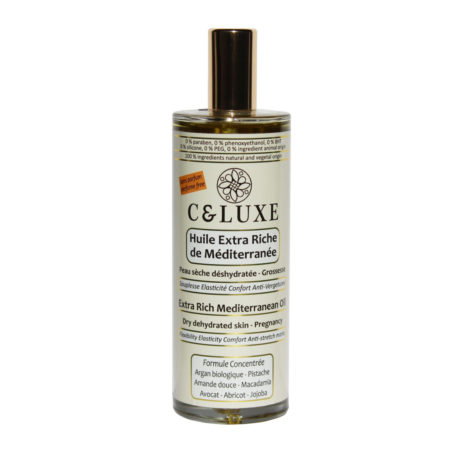 L’Huile Extra Riche de Méditerranée C et Luxe est une huile nourrissante qui hydrate et revitalise la peau et les cheveux, grâce à des huiles précieuses comme l’olive et la figue de Barbarie.