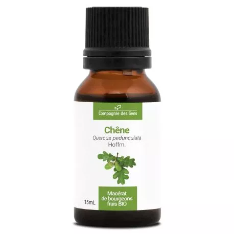 Il est issu de la macération de bourgeons frais de Chêne, récoltés en France, dans un mélange d’eau, d’alcool et de glycérine végétale. Ce procédé permet d’extraire tous les principes actifs et toute la puissance des bourgeons.