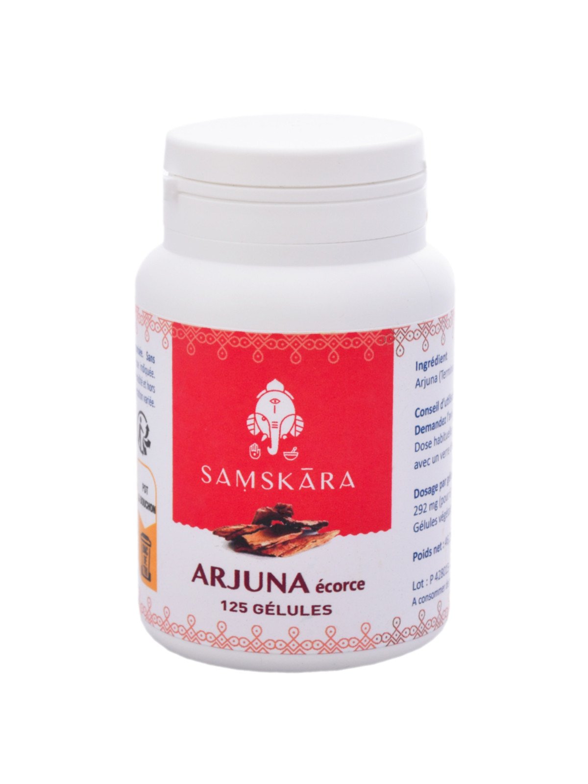 Par gélule : 292 mg de poudre d’arjuna écorce (terminalia arjuna). Sans excipient, ni conservateur.