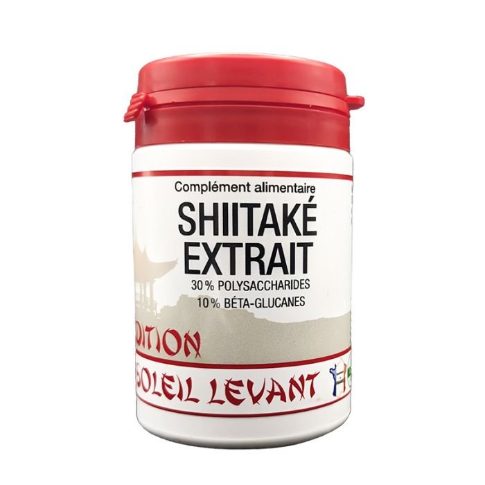 Tradition du Soleil Levant vous propose un Shiitaké en extrait certifié bio, afin de vous faire bénéficier de manière concentrée de toutes ses vertus. Cet extrait est titré à 30% de polysaccharides et à 10% de béta-glucanes. Il est présenté sous forme de gélules végétales, faisant de ce complément alimentaire un choix idéal pour les régimes végétariens et végétaliens.