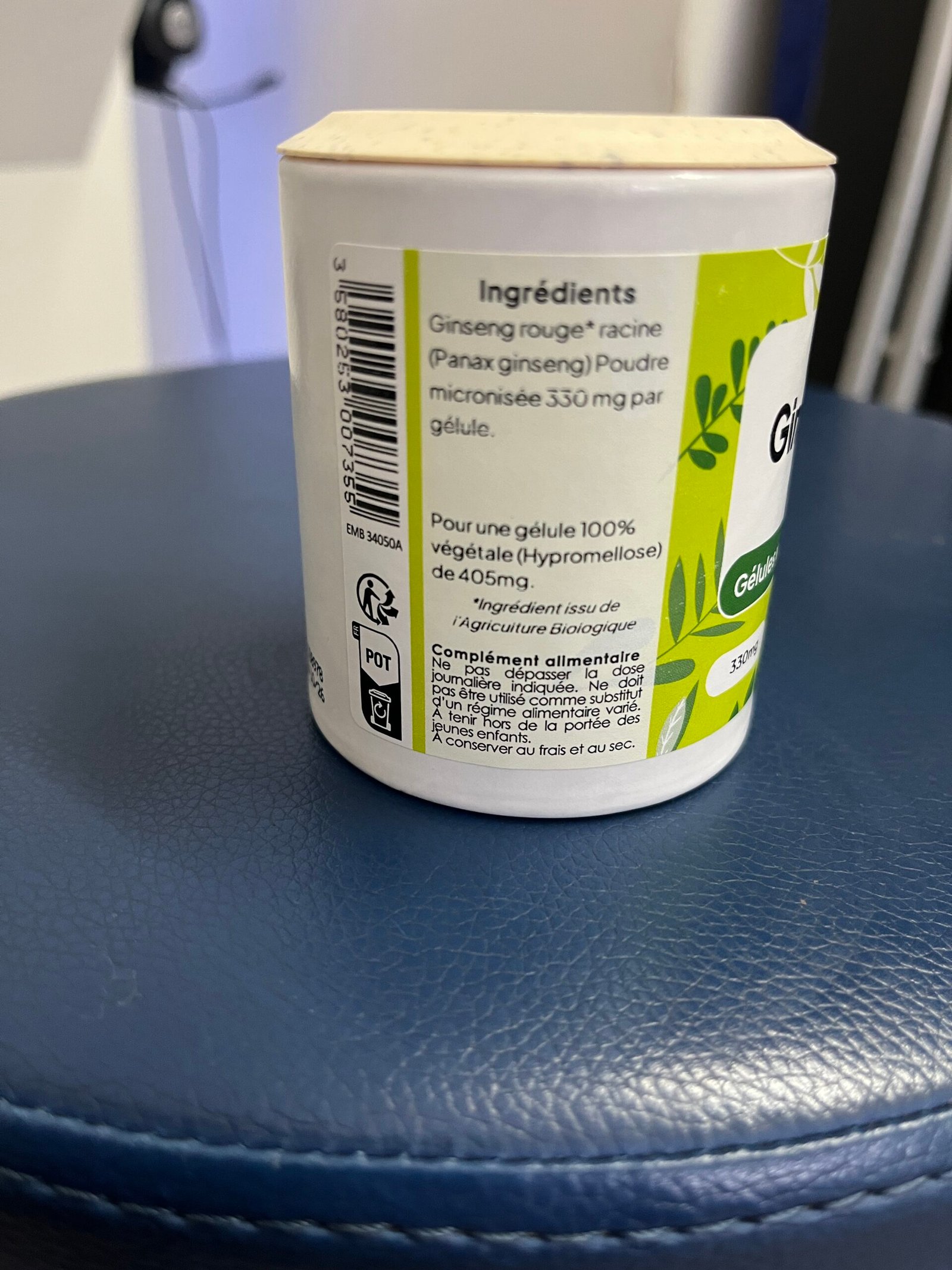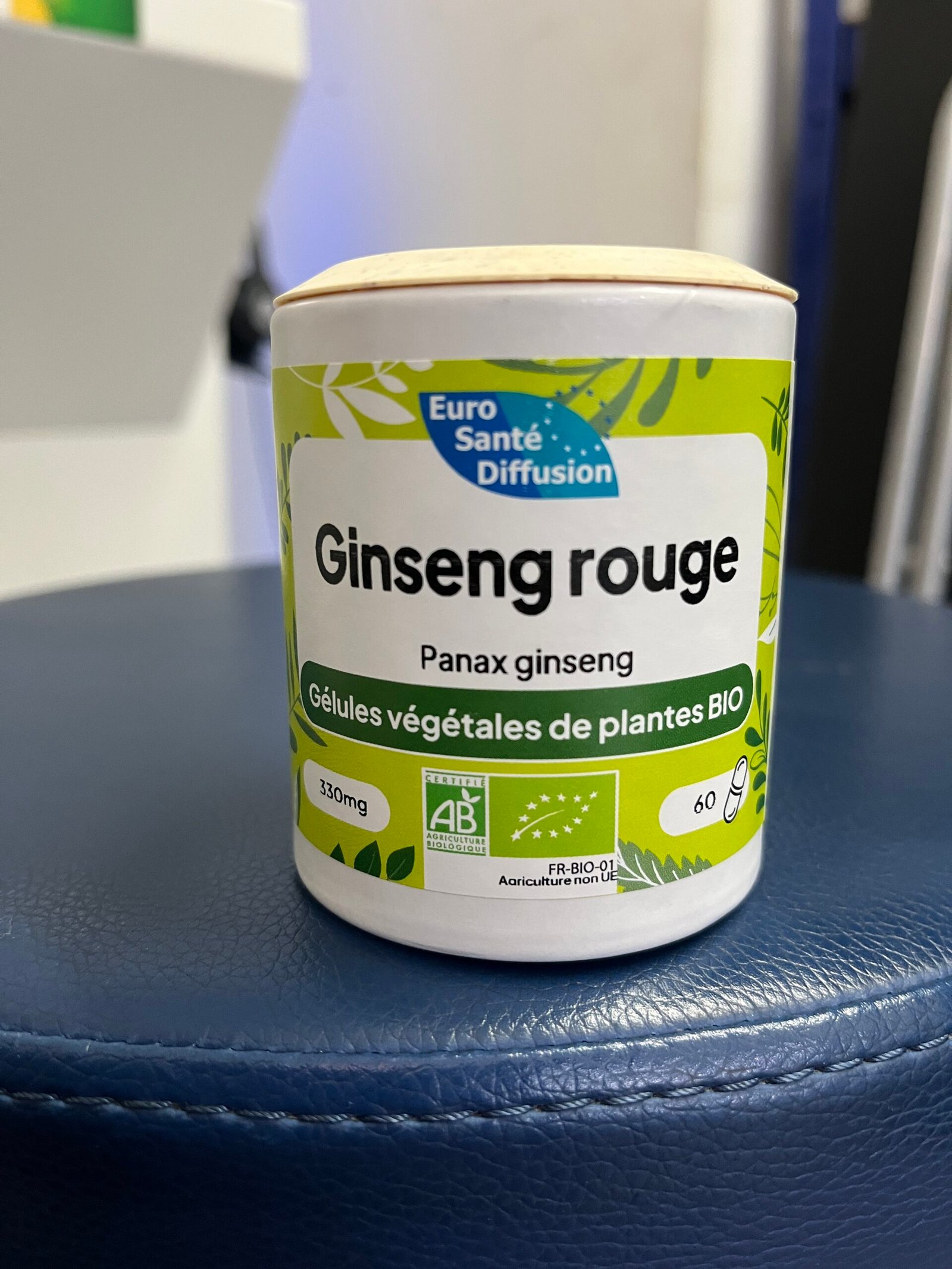 Ginseng rouge* (Panax ginseng) (racine) 330 mg par gélule.