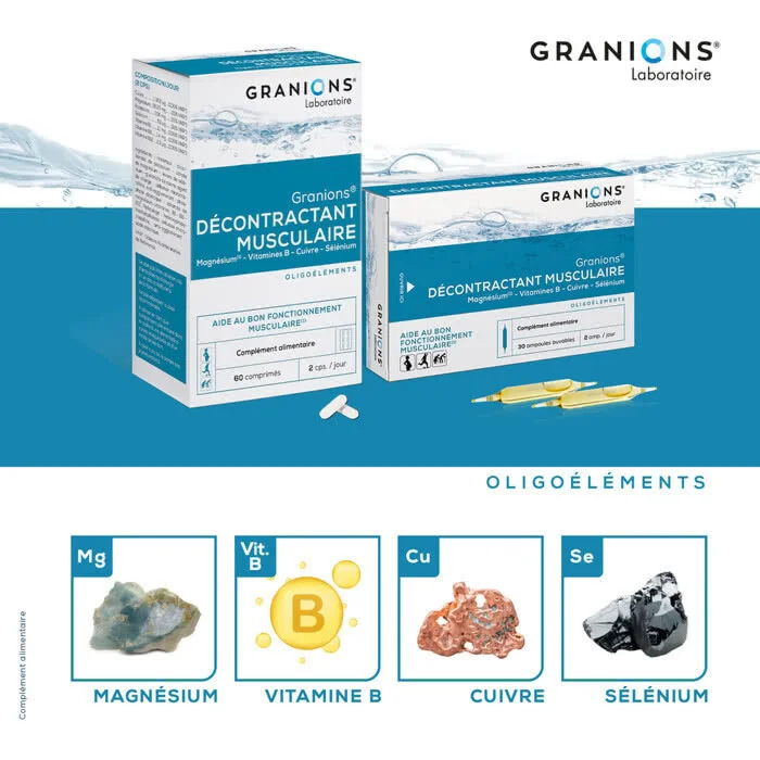 Ce lot est idéal pour une cure prolongée, apportant un soutien efficace aux muscles pour améliorer le confort et la souplesse. Granions Décontracturant Musculaire est la solution naturelle pour les sportifs ou toute personne ayant besoin de soulager ses tensions musculaires.