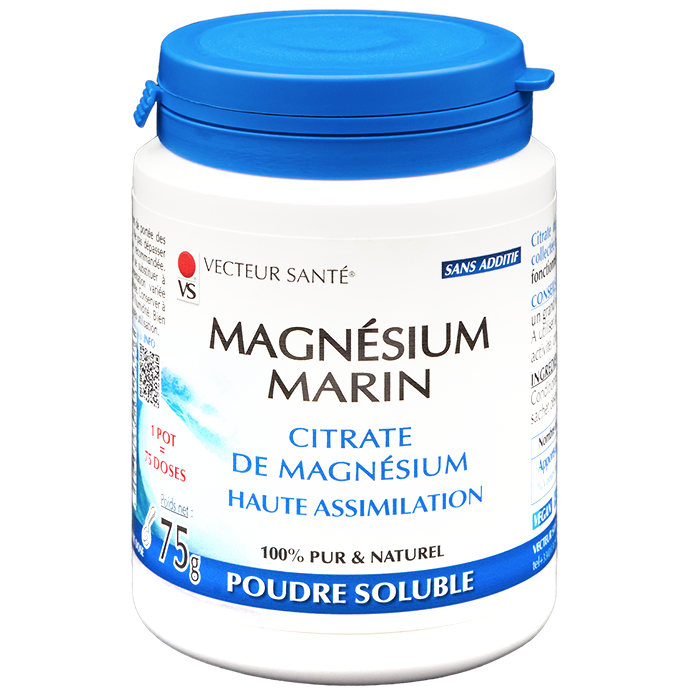 Magnésium Marin en Poudre 75 g, un complément naturel pour réduire la fatigue et soutenir le système nerveux et musculaire avec une formule marine facilement assimilable.