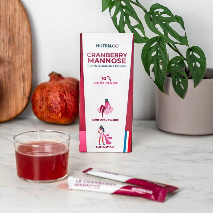 Pratique et facile à utiliser, chaque stick se dissout dans un verre d’eau, offrant une boisson délicieuse et rafraîchissante. Idéal pour une utilisation quotidienne, le Nutri&Co Cranberry Mannose est parfait pour celles qui cherchent à renforcer leur confort urinaire de manière naturelle et efficace.