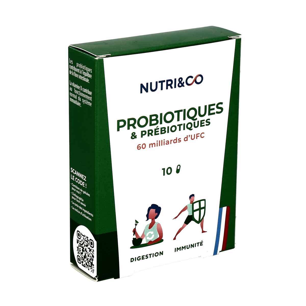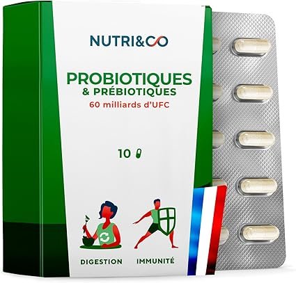Extrait d’orange (Fruit) (Citrus sinensis (L.) Osbeck.) titré à 90% d’hesperidine ; Antiagglomérant : amidon de maïs ; Probiotiques (Bifidobacterium lactis DSM 17741, Lactobacillus paracasei DSM 16105, Lactobacillus rhamnosus (Probi LiveBac®) DSM 6594, Lactobacillus plantarum (Probi LiveBac®) DSM 6595, Bifidobacterium bifidum DSM 21692, Bifidobacterium infantis DSM 26197, Bifidobacterium longum DSM 29470, Lactobacillus acidophilus LMG P-21904, Lactobacillus casei LMG P-20352) ; Gélule Embo Caps® AP : hydroxypropylméthylcellulose ; Vitamine D (cholécalciférol végétal, extrait de lichen), Vitamine B2 (riboflavine).