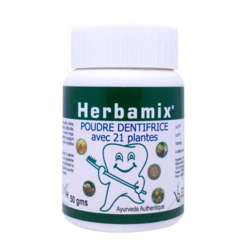 Poudre Dentifrice Herbamix Kerala Nature, Riche en extraits de 21 plantes AYURVEDA, permettant de retrouver santé, purification et rafraichissement de l’haleine, excellent pour votre bouche et l’ensemble des dents et des gencives.