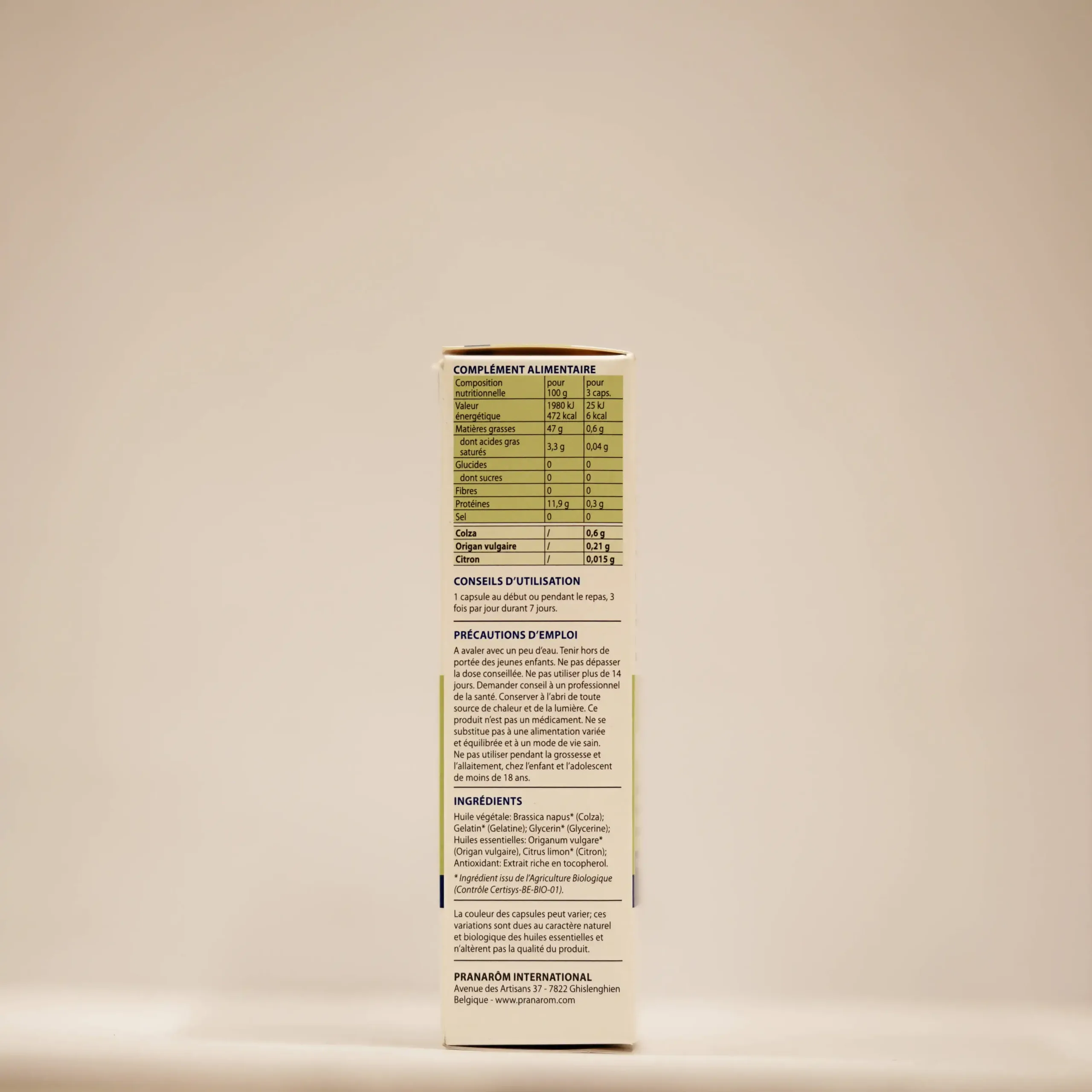 1 capsule au début ou pendant le repas, 3 fois par jour durant 7 jours.