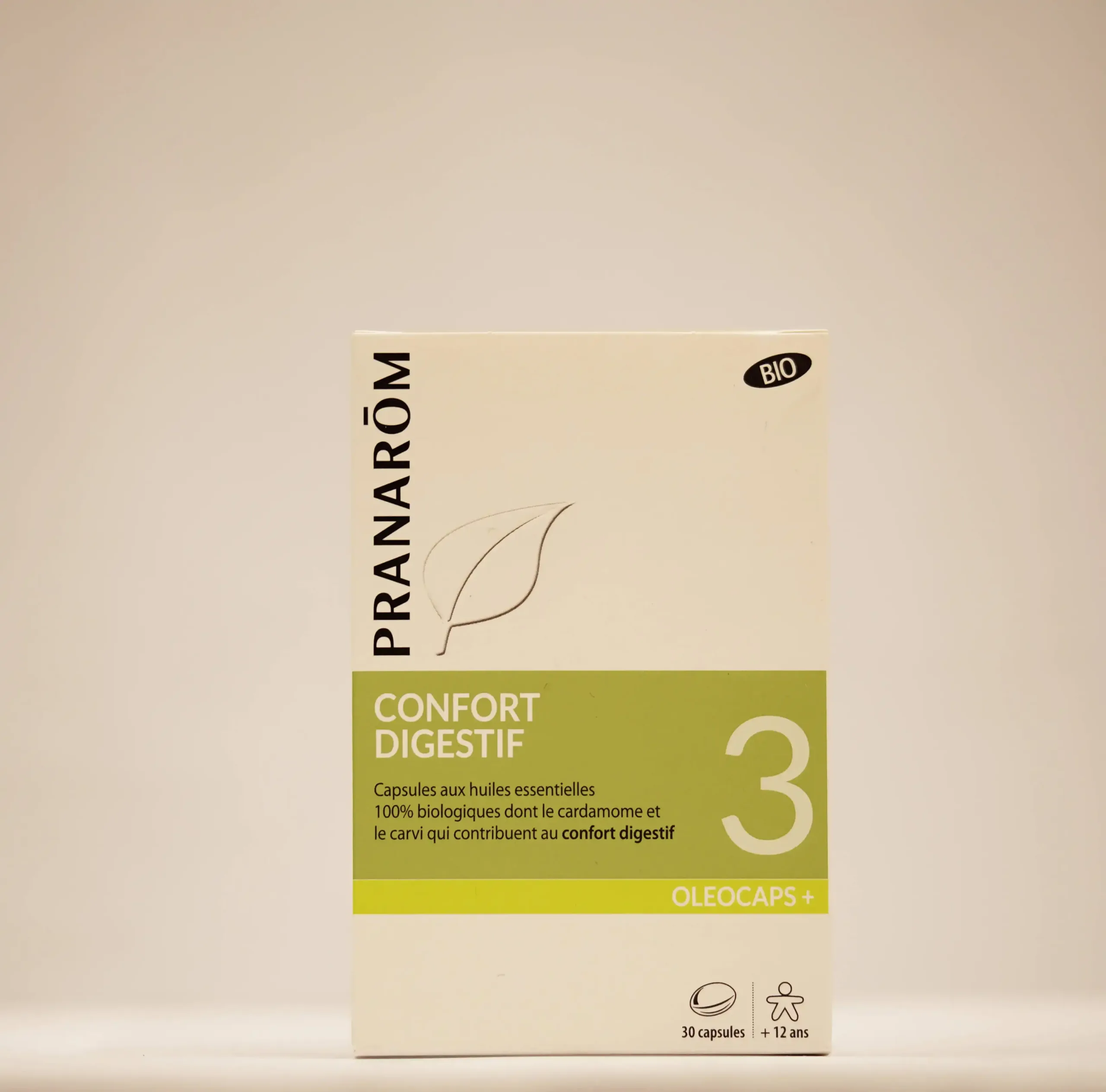 Pranarôm Confort Digestif 30 Caps est un complément alimentaire formulé pour soutenir le système digestif et favoriser une digestion sereine. Composé d’un mélange synergique d’huiles essentielles et d’extraits naturels, ce complément aide à soulager les inconforts digestifs tels que les ballonnements et les malaises. Grâce à ses propriétés carminatives et apaisantes, il contribue à réguler le transit intestinal tout en apportant un bien-être général. Idéal pour ceux qui souhaitent maintenir un système digestif en équilibre et profiter d’une digestion agréable au quotidien.