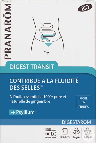PRANAROM DIGESTAROM TRANS DUO B 6GX10 est un complément en sachets qui aide à améliorer la digestion et le transit intestinal. Formulé avec des plantes et des huiles essentielles, il soulage les inconforts digestifs.