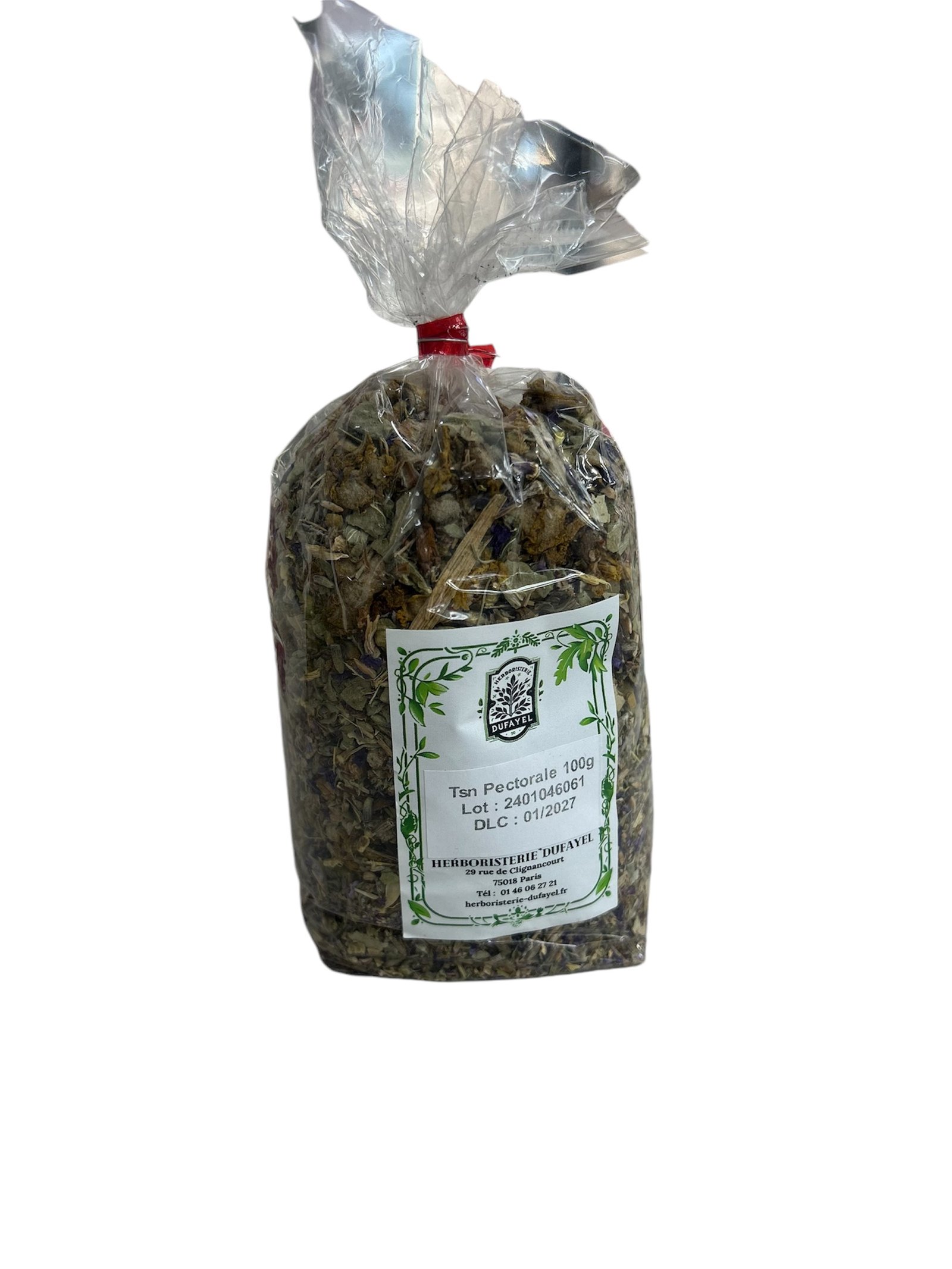 Découvrez notre tisane pectorale, un mélange apaisant d’herbes comme le thym, le guimauve et la réglisse. Cette infusion réconfortante aide à soulager la toux et à dégager les voies respiratoires, tout en apportant une sensation de douceur et de chaleur. Présentée dans un sachet éco-responsable, notre tisane pectorale offre un moment de bien-être et de réconfort à chaque tasse, idéale pour apaiser les désagréments respiratoires.